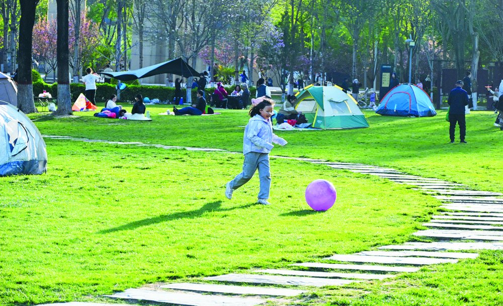 4月6日,在石家庄市石津灌区文化公园共享绿地上,市民在春日的阳光中游玩、休憩,亲近自然,拥抱最美春光。